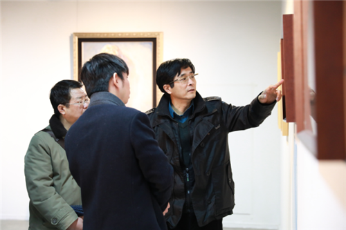 观展过程中,丁方院长对参展作品进行了仔细的点评,以及作品所反映“创化”概念的得失做出耐心的指导,并再次强调在创作过程中要细心揣摩“创化”原型在材料、形式、内涵方面的关系,在创作者的调和下得到能够与古代作品对话的“新”作品。同时,哲学院牛宏宝教授作为学术主持在观摩中指出:在“创化”概念下的艺术创作要打破普通概念中将艺术家主观感受作为艺术创作准则的教条,重视“创化”对象本身所含有的艺术内涵,将自己的作品与“创化”对象并置思考。