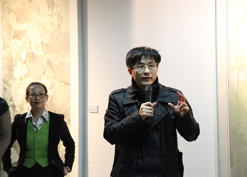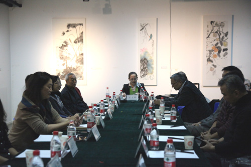 此次开幕式暨研讨会主要围绕花鸟画的继承与发展以及人大师生近年来教学成果的展现与评价展开讨论,丁方教授和徐庆平教授的致辞拉开展览的序幕。首先,丁方教授对来宾表示热烈欢迎并祝贺所有参展师生,虽然室外严寒但亲切的学术氛围让美术馆内显得春意盎然。接着,徐庆平教授指出此次研讨会对推动中国花鸟画的传承与发展、我院花鸟画专业学科建设以及人大师生的学习提高具有重要意义,并慷慨陈词道:中国的花鸟画,我们可以很自豪的说,在这个领域我们的发展是世界最高的。中国艺术研究院美术研究所著名美术评论家王镛先生谈到:此次人民大学的花鸟专题展盛况空前,令人耳目一新。中国花鸟画如唐诗宋词一般,蕴含着诗意,并谈到学院的教学将中国传统花鸟画的基本的艺术规律法则传授给学生,这是非常难得的。徐庆平教授再次发表讲话,给予花鸟画很高的地位与赞扬:花鸟画是一种体现中国人与自然和谐统一的很高的审美,值得我们努力发扬。陈传席教授则指出花鸟画是显著区别于西方绘画的画种,文明是逐步缩小世界的差距,文化却是逐步拉大世界的差距。在这一点上,中国绘画发展强大后将在世界绘画界独树一帜。