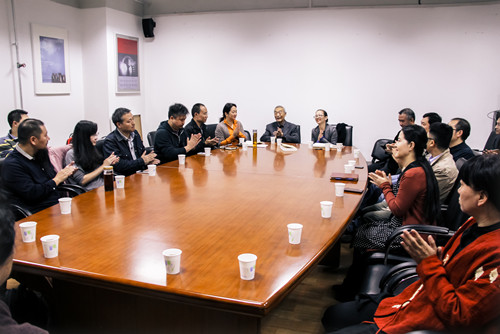 2015年10月15日,江苏省徐悲鸿研究会副会长邵晓峰先生、考察团团长范文道先生等一行十余人来徐悲鸿艺术研究院交流座谈。座谈会由艺术学系主任、徐悲鸿艺术研究院学术部主任王文娟老师主持并评议。徐悲鸿艺术研究院院长徐庆平教授莅临座谈会并致辞,学院党委副书记别敏老师、绘画系主任黄华三教授、高毅、刘明才、吴冰、陈浩波、金蕾等多位老师参加座谈并发言,与会的还有我院艺术学系部分硕士、博士研究生。