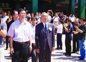徐悲鸿艺术研究院院长徐庆平(右一)目送母亲廖静文灵柩。