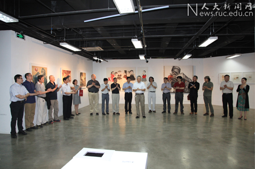 绘画系主任黄华三教授、设计系主任童岩副教授作为此次展览指导,简要介绍了此次展览筹办情况;刘明才副教授和设计系2010级视觉传达专业王雅坤同学分别作为师生代表发言。