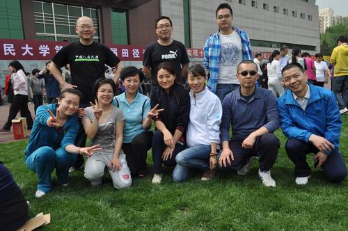 田径运动会在学校体育场举行。我院20余名教职工报名参加了包括滚铁环、背夹球、运球接力、沙包掷准4个集体项目在内的共计8个项目的比赛,其中我院在运球接力的比赛中获得了三等奖的好成绩。在赛场上,队员们的加油喝彩声和欢笑声充满整个赛场。此次比赛也为各位老师提供了一个交流感情,展示自我的平台,体现了我院教职工良好的精神风貌。
