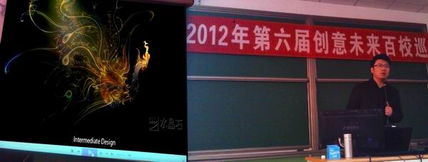 学生讲解了他参与指导的两届奥运会开幕式、闭幕式大型视觉影像设计创意过程。讲座从图像创意开始,经过着色、动态化、媒介使用,给学生们展示了诸多设计方案,直至最终实现效果。讲座让学生们了解了设计过程中文化、技术、媒介三者如何融合,以及未来视觉设计发展趋势。在学院和设计系领导的大力支持下,此次讲座由设计系教师焦振涛组织进行,希望未来能在教学与实践之间搭建起桥梁,给学生们创造更多的学习与实践的机会。