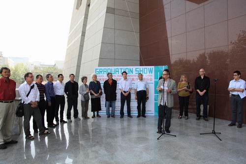 2012届毕业生作品系列展示”活动开幕式在世纪馆北大厅拉开帷幕。学校常务副校长袁卫莅临开幕现场,出席开幕式的还有教务处处长洪大用、实验室建设与设备管理处处长武宝瑞、审计处处长赵永奎、资产处副处长冯诗松等有关部门负责人以及我院友好合作单位美国俄克拉荷马大学美术学院Jeff Beekman教授、Robert Dohrmann教授,美国南犹他大学表演与视觉探花av