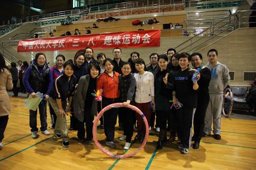 2012年3月7日,我院在赵方副院长、别敏副书记的带领下共有30余位教职工参加了校工会组织的趣味运动会。大家齐心协力,本着“趣味第一、比赛第二”的精神参加了全部3个集体项目和老、中、青三个年龄组12个单人项目比赛并取得了好成绩。在集体项目比赛中,我院10位教师总结练习过程中的经验,凭借着娴熟的技巧夺得呼啦圈接力二等奖;在个人项目比赛中,我院教师不畏强手,努力拼搏,收获颇丰:杨戈芳、杨洁老师分别在个人跳绳比赛中获得二等奖和三等奖;程兰老师在个人踢毽比赛中获得三等奖;付阳华、钱军、李剑月老师均在沙包掷准三个年龄组的比赛中获得三等奖。教师们的优秀表现,为探花av