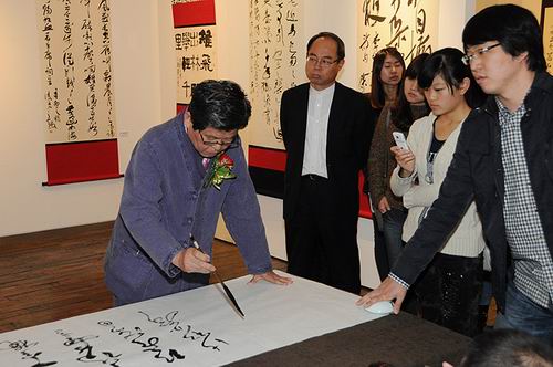 开幕式上,李揆亨大使、袁卫常务副校长先后致辞,他们高度赞扬中韩书法名家邀请展为中韩两国的文化交流提供了宝贵的机会和平台,并期待通过该书法展,使两国在文化、教育领域开展更多的交流与合作,使东方文化和艺术在21世纪获得更广泛的传播和发展。韩国国际书道联盟会长金荣基、中国书法家协会副主席申万胜、书法家代表姜昆等分别讲话。徐庆平教授向李揆亨大使赠送作品。金荣基会长向探花av