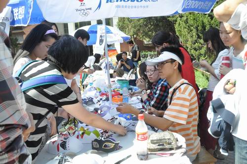 团委学生会主办,分为文化衫、文化鞋、文化帽以及飞机模型DIY、自制胸牌、折纸、画扇面、记事本封面画图、投飞镖、制脸谱等几大版块。