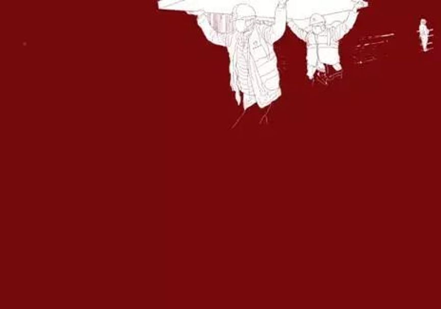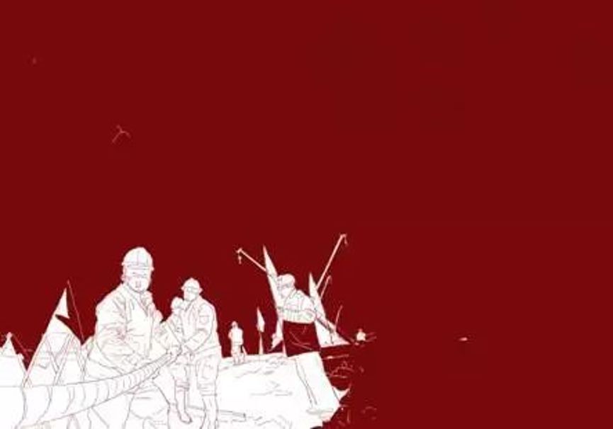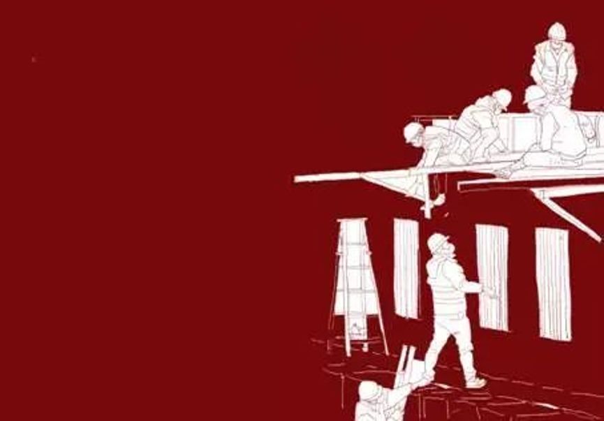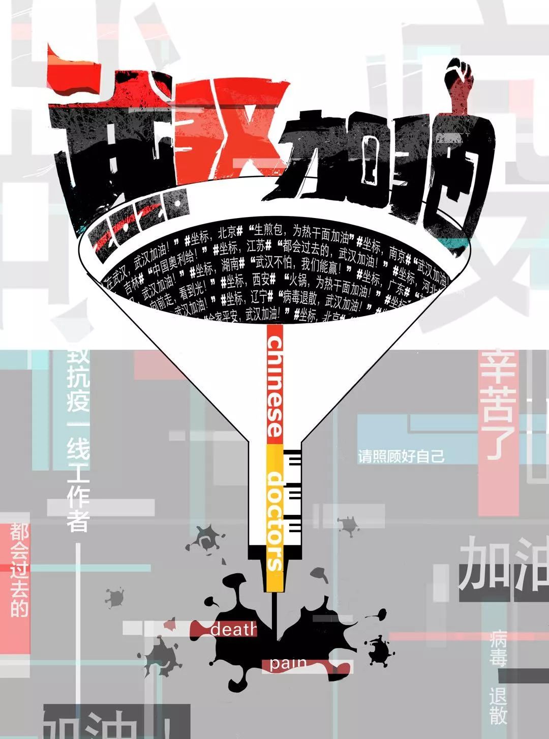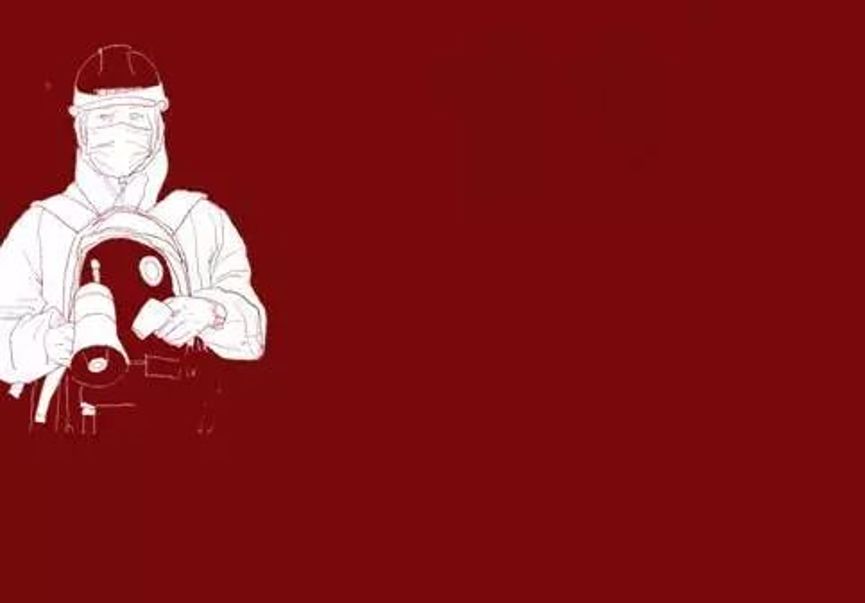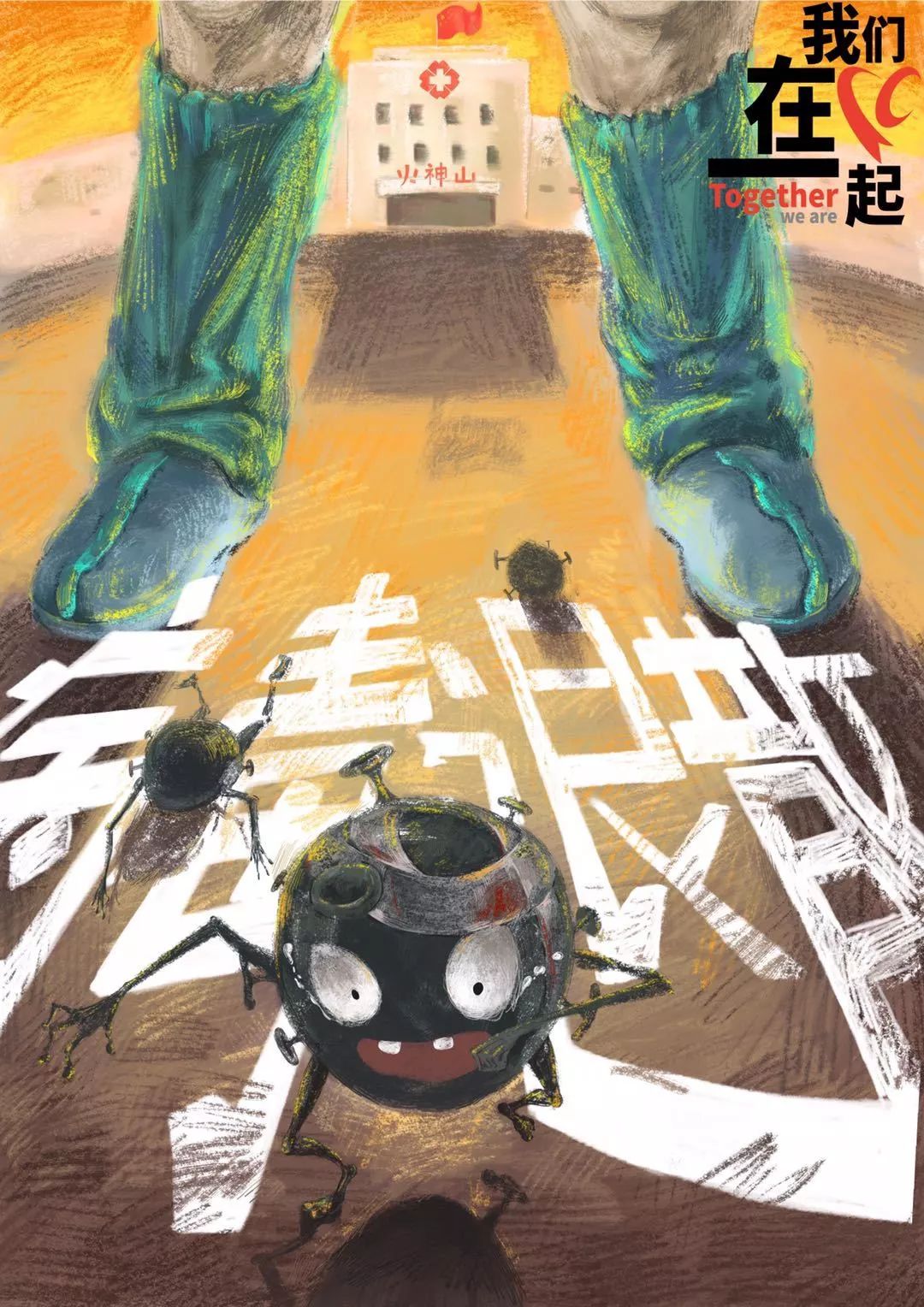 作品素材取自火神山医院建设工作现场的新闻图片