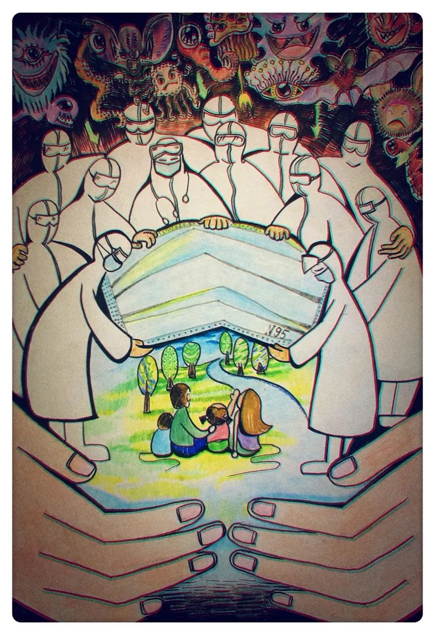 学院官微平台也将陆续将相关题材作品选登刊发,致敬奋战在最前线的最美中国人。今日推送学院学生的部分绘画、书法、艺术设计作品。