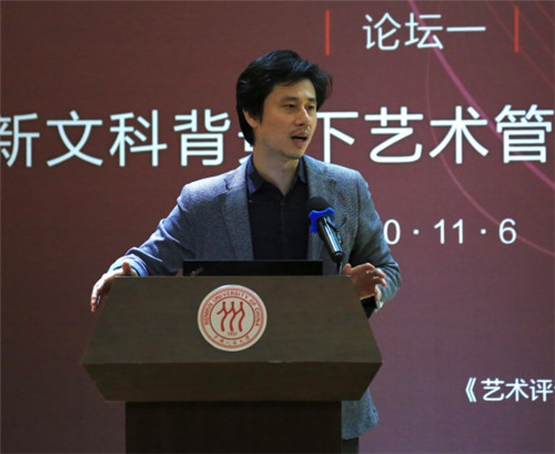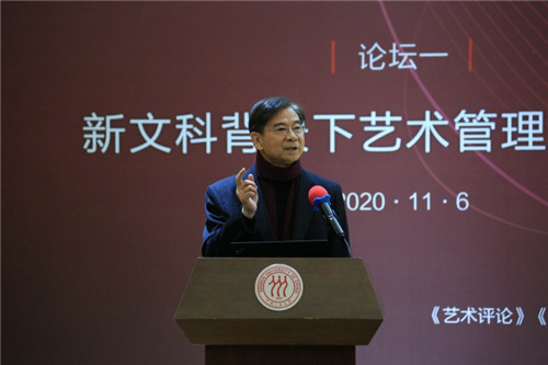 上海戏剧学院党委副书记、院长黄昌勇教授以《新时代新文科背景下的艺术管理专业学科建设的思考》为题进行了主旨发言。他从中国与世界、传统和现代、理论与实践三个维度,探讨艺术管理学科人才培养的新模式,提出艺术管理学科应当朝着厚基础、重人文的方向发展。中央音乐学院原院长王次炤教授进行了《中国传统音乐表演中的速度现象及其文化根源》的主旨演讲,通过比较中国式快板与西方音乐的速度现象,体现中西方审美的差异与艺术的特色,从文本分析的角度给予与会者带来启示。中央美术学院艺术管理与教育学院院长余丁教授以《新时代艺术管理学科的任务》为题,从“十三五”期间有关文艺的重要讲话和学习五中全会精神的视角出发,聚焦2035年建设文化强国,提出了艺术管理学科建设新发展阶段的几个趋势,如理论与实践的结合,将5G和大数据等技术应用在艺术的交叉区块链中,“大艺术”与产业的深度融合,公共文化服务体系建设和文化产业发展的深度融合等。他提出,应当用中国实践建立中国学派,使中国的艺术管理成为新文科中领先世界的学科。