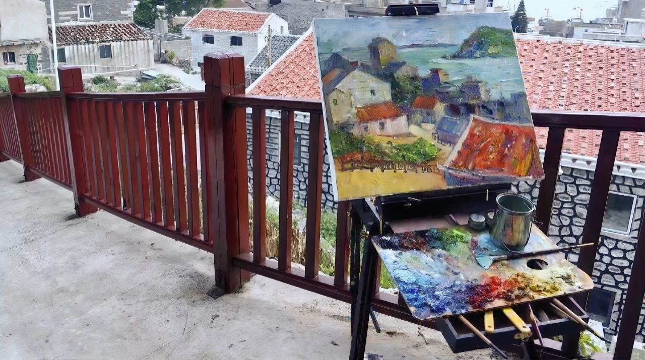 工作之余,一有时间,史惠青就扛着绘画工具箱去作画。“在画画时,周围都会有游客,有时还会过来和我合照,闹中取静是我在海岛创作的常态。”史惠青说,这四幅海岛题材的作品倾注了自己的很多心血,当作品搬运到艺术展现场的时候,油画颜料都还未干透。