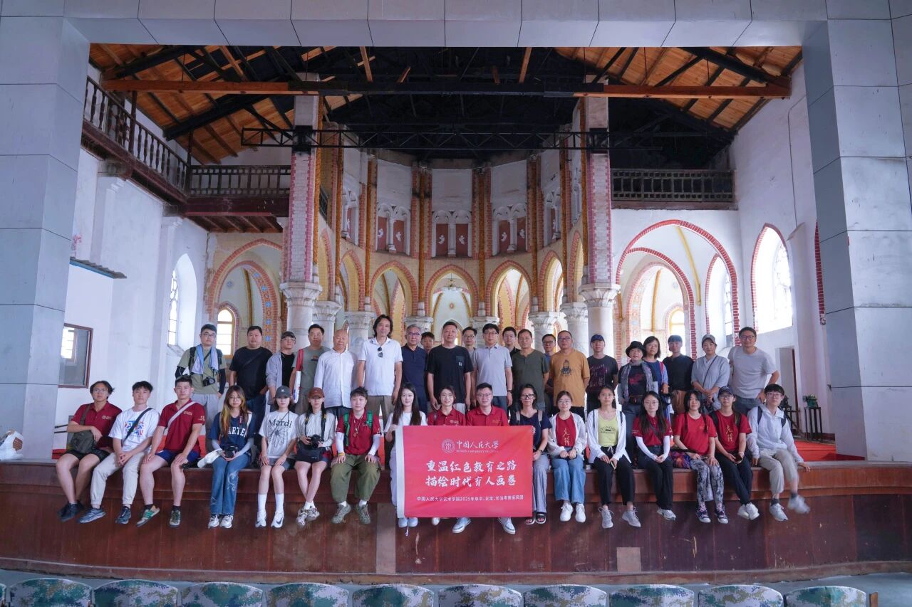 通过实地走访三地革命教育旧址,艺术家深入挖掘一手创作素材,切身感受革命教育家与青年学子在艰苦环境中矢志报国的精神品格。穿越青砖教堂的拱券,抚摸土坯墙上的弹痕,采风团在历史现场完成沉浸式精神洗礼。旧址的震撼、史料的诉说,让师生触摸到“背着包袱行军”的坚韧、“以笔为枪”的赤忱、“实事求是”的求索。这种时空对话的情感共振,为创作注入灵魂温度与历史重量。