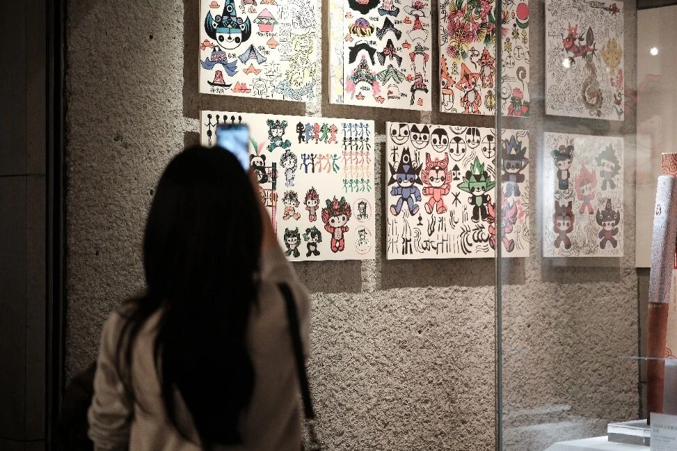 在韩美林艺术馆,同学们依次参观了绘画、书法、雕塑、陶瓷等展区。从福娃设计原稿到气势恢宏的雕塑,从笔墨酣畅的书法到古朴典雅的紫砂壶,每一件作品都展现了韩美林先生对民族文化的深刻理解与创新表达。奥运主题展区陈列着72袋福娃设计手稿和模型,生动诠释了艺术扎根人民、服务国家的使命担当。