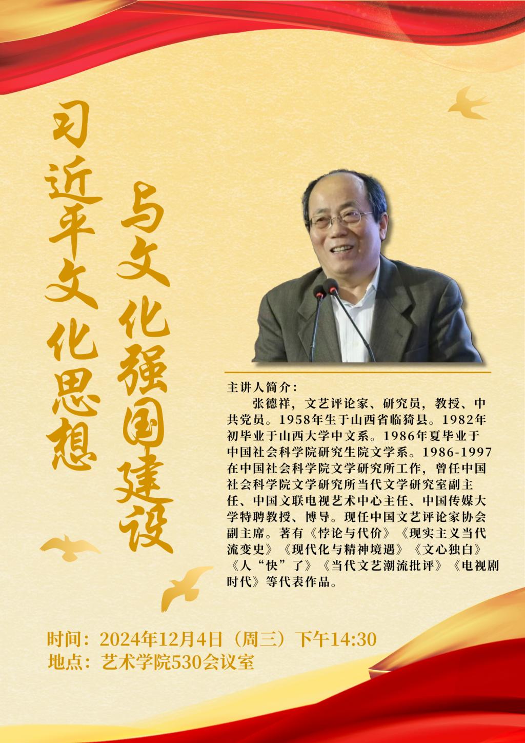 张德祥,文艺评论家、研究员,教授、中共党员。1958年生于山西省临猗县。1982年初毕业于山西大学中文系。1986年夏毕业于中国社会科学院研究生院文学系。1986-1997在中国社会科学院文学研究所工作,曾任中国社会科学院文学研究所当代文学研究室副主任、中国文联电视艺术中心主任、中国传媒大学特聘教授、博导。现任中国文艺评论家协会副主席。