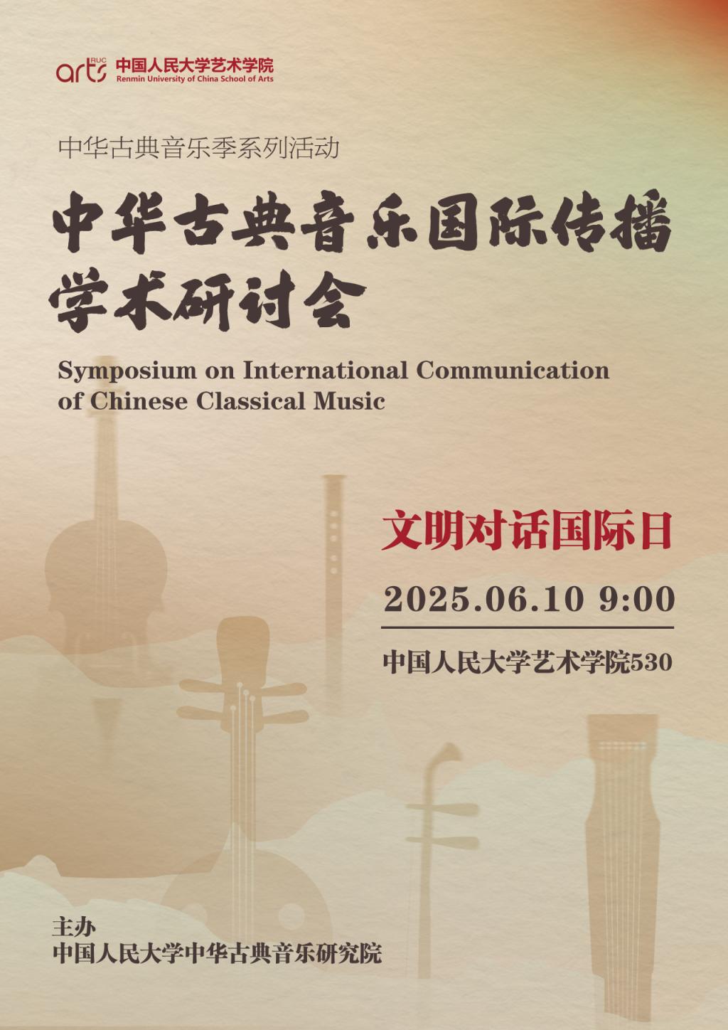 为响应联合国文明对话国际日倡议,深入挖掘中华古典音乐的文化价值,推动中华古典音乐与国际传播的跨学科研究,兹定于文明对话国际日2025年6月10日9:00-12:30在探花av 举办“中华古典音乐国际传播”学术研讨会。