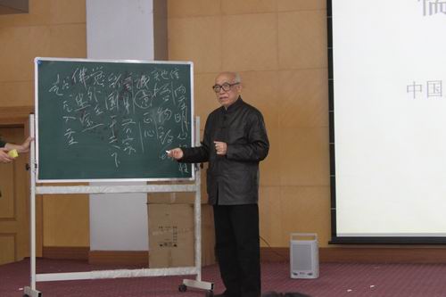 我国著名学者、书法家、首都师范大学书法文化研究院名誉院长 欧阳中石先生应邀来到人民大学,为两期学员作了题为《文化与书法》的学术演讲。他结合自己近期学术研究工作,着重谈了中国汉字和中国书法、书法与中国文化、书法学习中的“学”、专与博等问题,并回答了学员的问题。