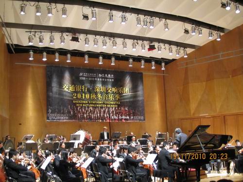 20101119晚,中青年钢琴家、我院钢琴教师张放与深圳交响乐团合作演出了拉赫玛尼诺夫的《帕格尼尼主题狂想曲》,演出取得了巨大的成功。