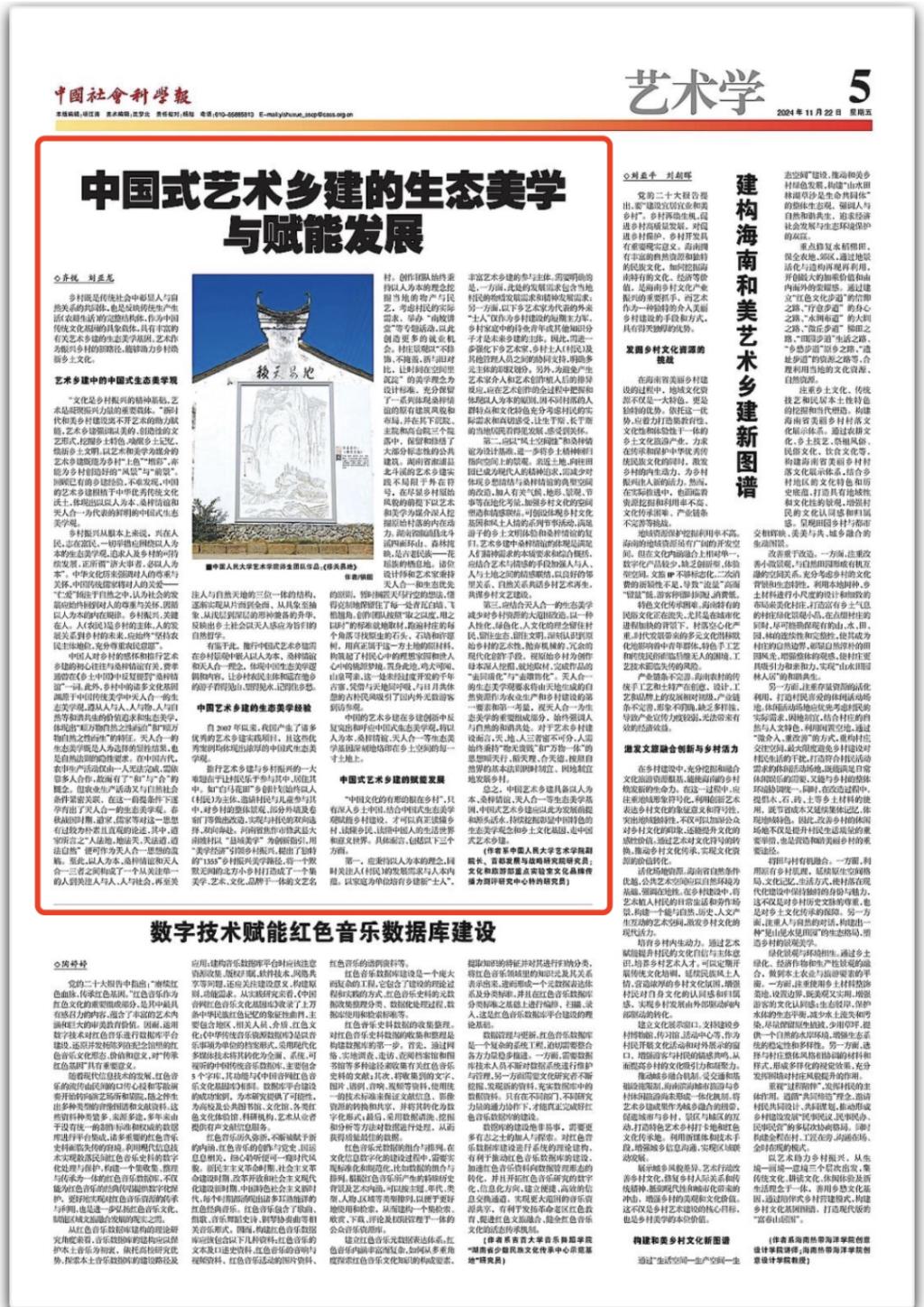 媒体聚焦|《中国社会科学报》:中国式艺术乡建的生态美学与赋能发展