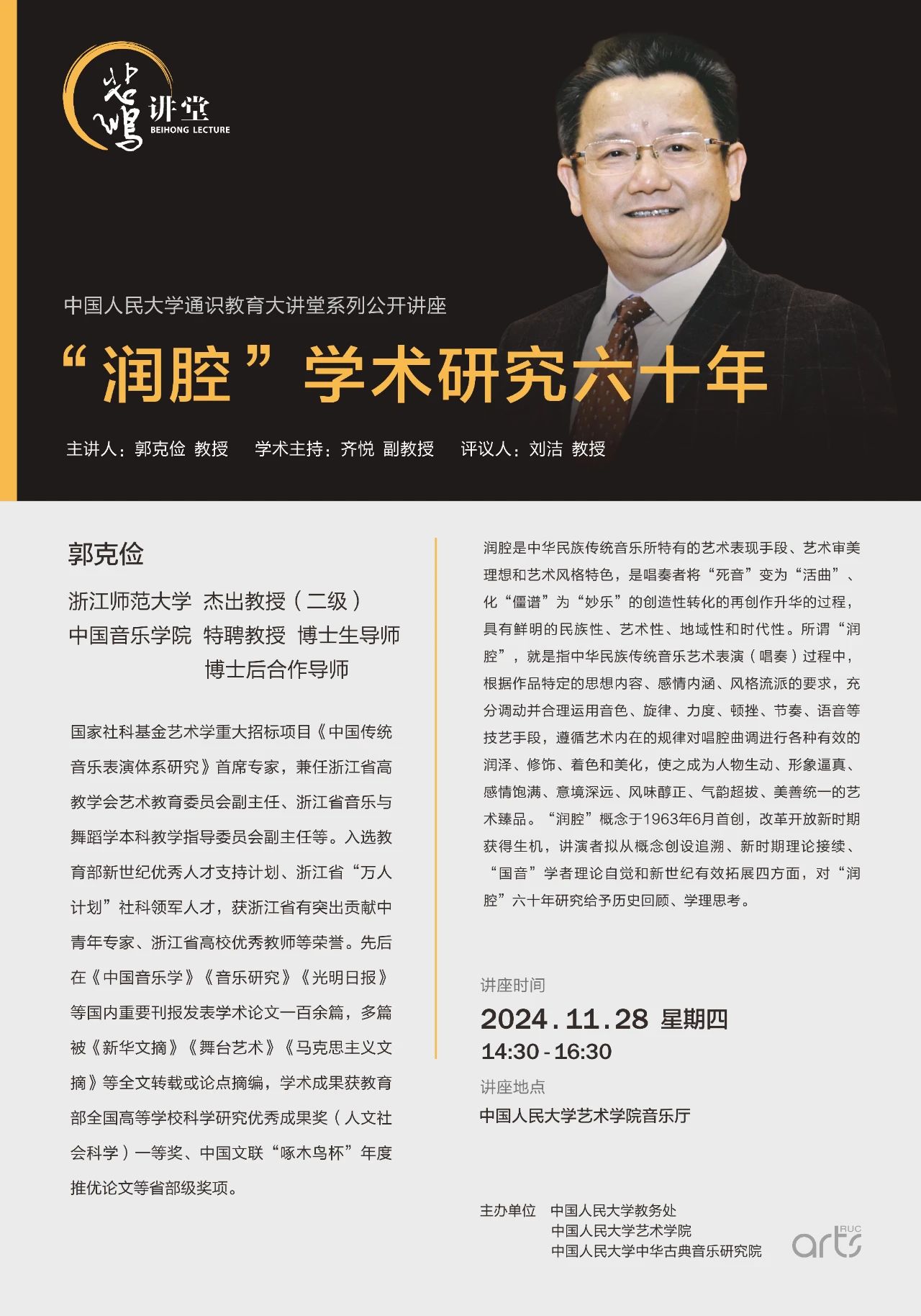 学术资讯|【悲鸿讲堂预告】“润腔” 学术研究六十年