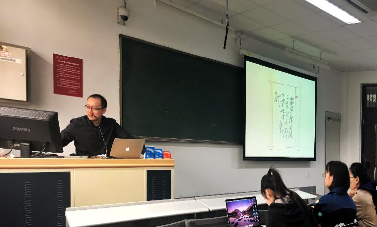 随后,他又以自己的书法学习经历鼓舞同学们坚定决心,努力学习民族艺术。并以毛主席的诗词、书法为例,深入解析了艺术的本体核心是人的心灵。心灵的境界与层次将决定艺术创造的境界与格局,一流的艺术创造必然源于一流的心灵。对《尚书·虞书·大禹谟》所讲:“人心惟危,道心惟微;道精惟一,允执厥中。”的释读,使同学们更深切的体验到艺术创造的过程正是“写心”的过程,是对变动不拘的心灵形迹化表现的过程。高尚的艺术创造正因为创作者怀有一颗高尚的心灵。