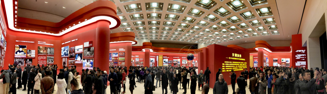 国家博物馆门前,“伟大的变革”五个大字巍然矗立。本次展览以“坚持和发展中国特色社会主义”为主题,紧扣改革开放40年历程,全方位、多角度、深层次集中展示改革开放的历史纵深感、群众获得感、发展成就感。