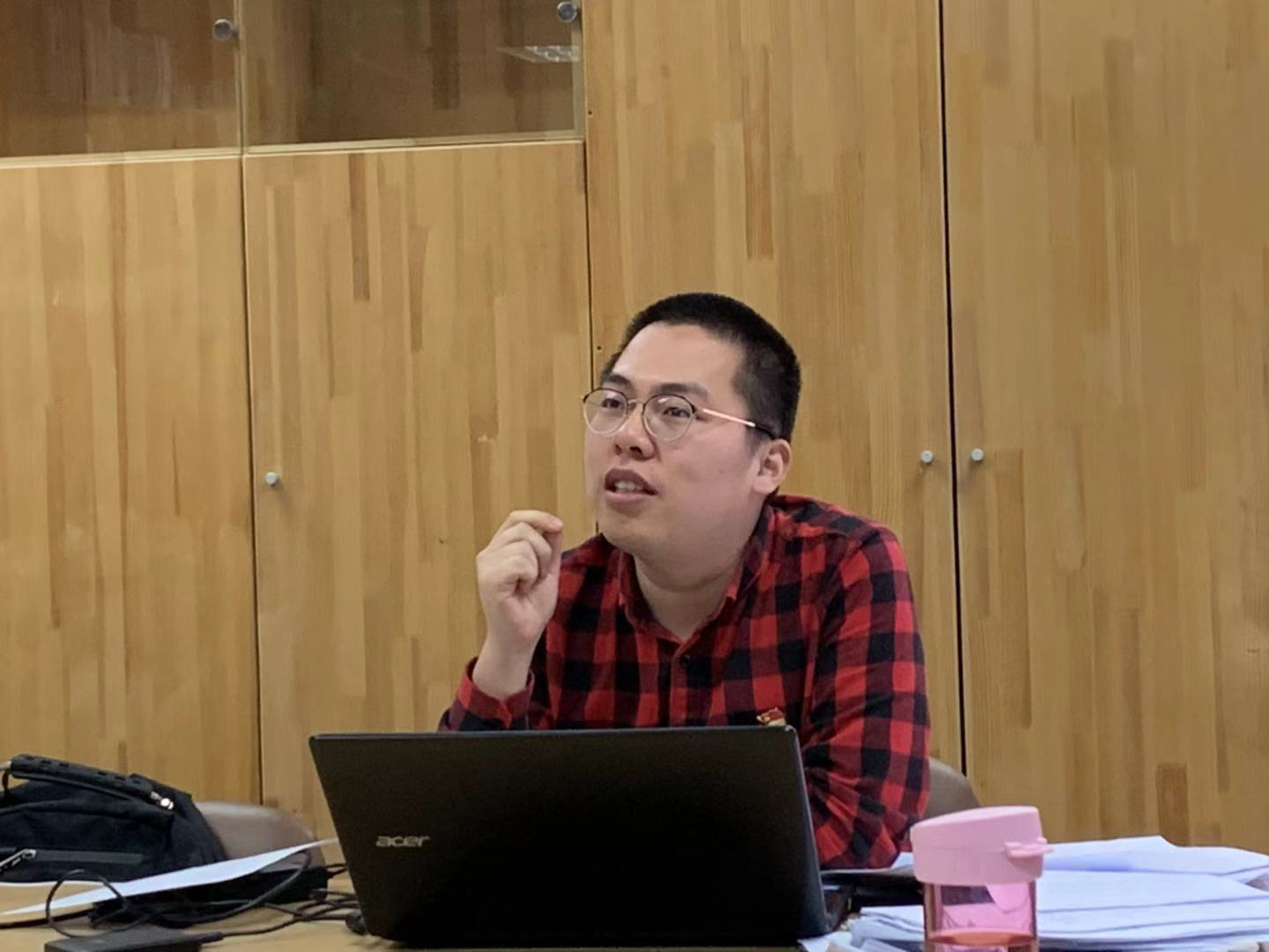 会议伊始,范名简同学向校党委组织部及党建促进会介绍了学生二支部的组织架构、成员构成等情况,并邀请刘明才副教授带领大家就《中国共产党支部条例(试行)》的文件精神展开研究学习。