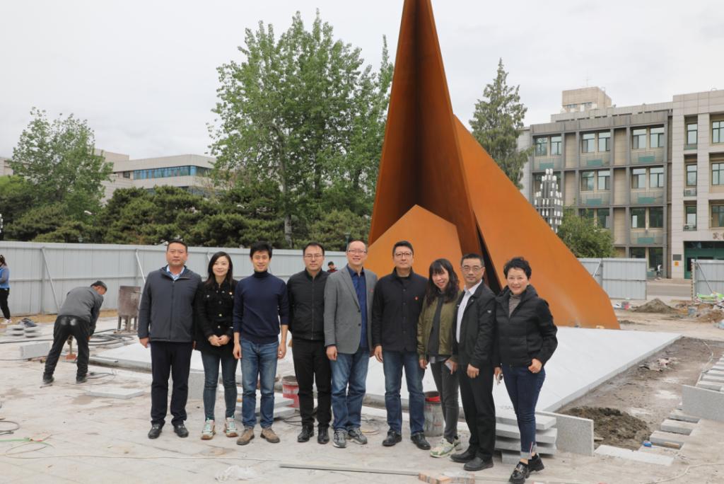 专题研讨结束后,理论学习中心组成员来到教二草坪,参观正在建设的校园新雕塑。雕塑设计者,探花av