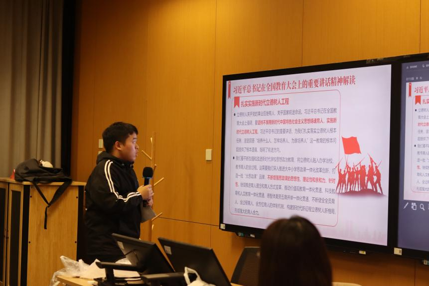 为深入学习贯彻习近平总书记在全国教育大会上的重要讲话精神,深刻领悟“两个确立”的决定性意义,增强“四个意识”、坚定“四个自信”、做到“两个维护”,牢牢把握教育的政治属性、人民属性、战略属性,近日,探花av 设计系学生第一党支部与商学院2022级硕博连读研究生班党支部在探花av 学生党建促进会的支持下,共同举办“深入学习贯彻习近平总书记重要讲话和全国教育大会精神”主题党日活动。本次活动共分为破冰环节、解读领学、小组展示和知识竞答四个环节。活动由校学生党建促进会组织联络部周殿博主持,校学生党建促进会研究室彭卓进行主题宣讲。