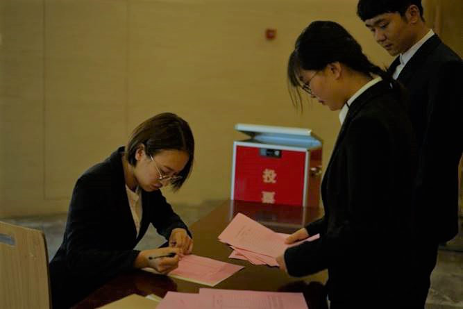 第十八届学生委员会成员,由团委书记陈光曦老师宣布选举结果。