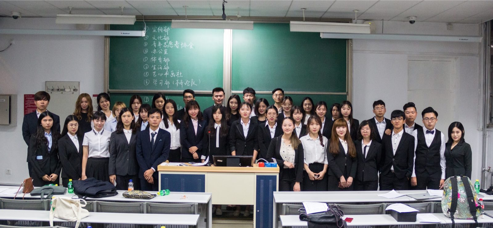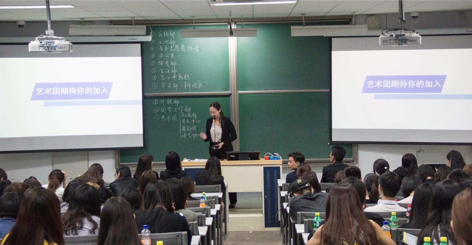 随后,各部门的部长及副部长上台发言,分别对院会下辖11个职能部门,即宣传部、文化部、青年志愿者协会、办公室部、体育部、生活部、艺心书画社、学习部(辩论队)、外联部、团学工作部以及艺术团(包含影视部、音乐中心、舞蹈团,语言协会四个部门)的职能与组织结构进行了详细的说明,方便新生们根据自身情况做出最佳选择。