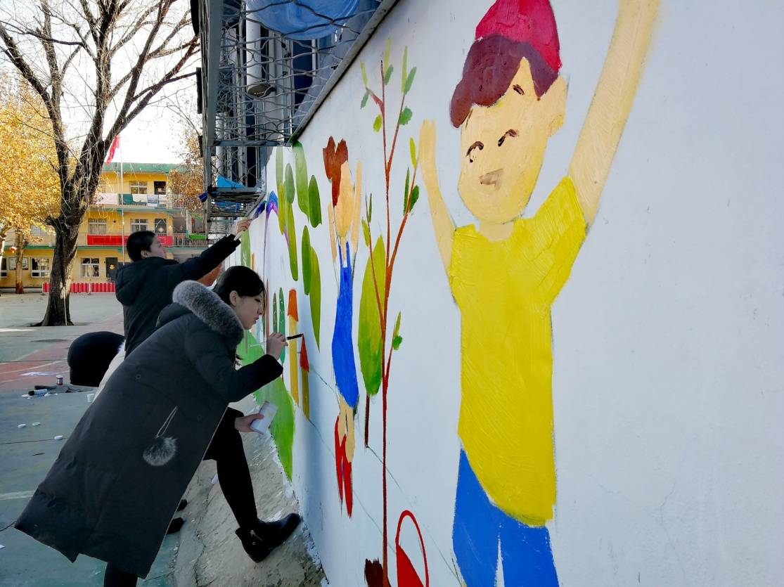 三十余名党团骨干,在党总支副书记别敏副教授、团委书记陈光曦副教授和党务秘书吴玥老师的组织带领下,前往北京昌平智星农民工子弟学校开展主题墙绘活动。北京清晨的气温接近零度,但同学们对公益活动的热情依旧高涨,温暖了整个寒冬。