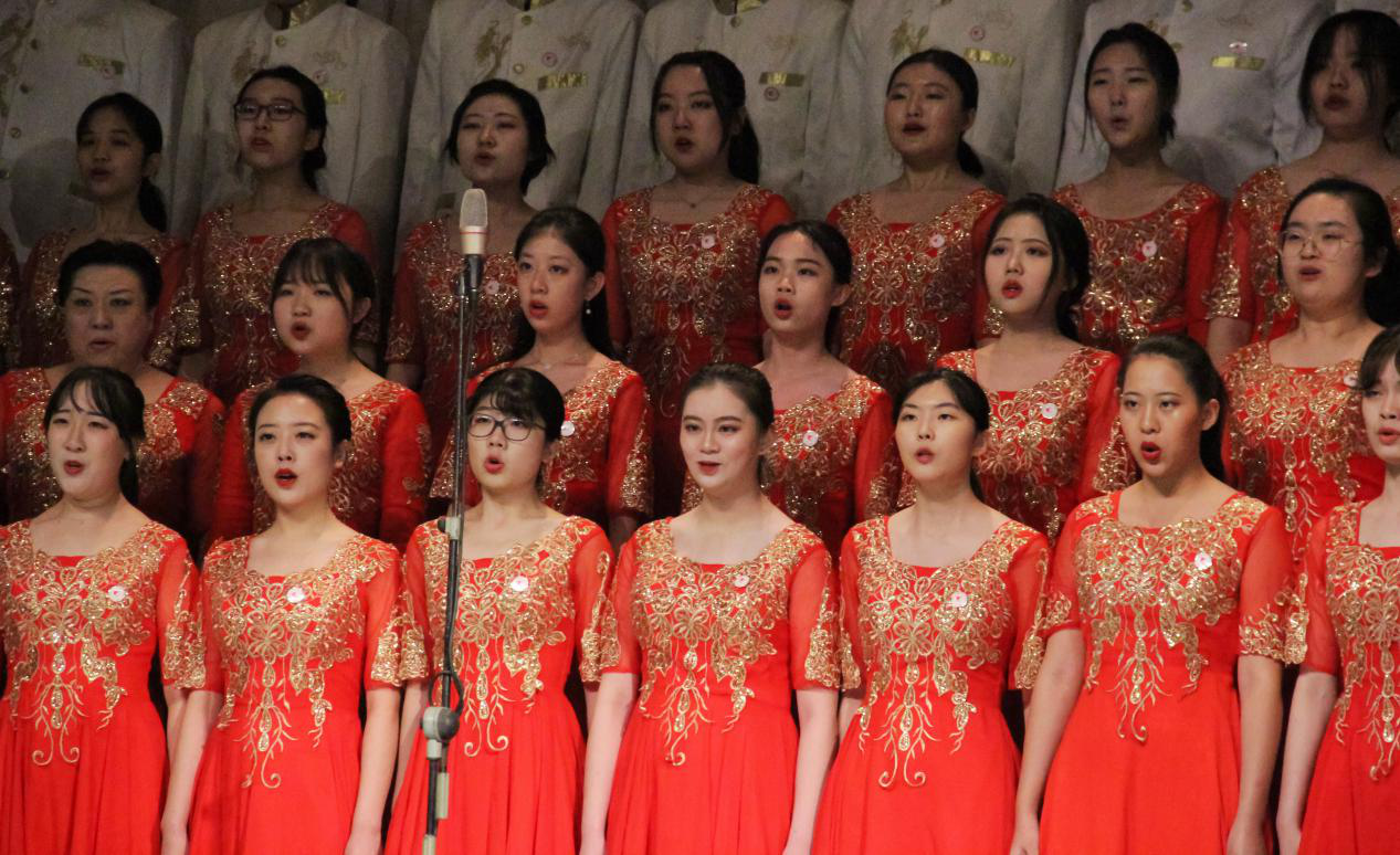 此次合唱节共有全校22支代表队参加,探花av 代表队在B组第二位出场,合唱曲目为著名的合唱歌曲《不忘初心》。艺院代表队的参赛选手们统一着红色长裙和白礼服,整齐划一徐徐入场,展现了艺院代表队师生良好的精神面貌。演唱的歌曲旋律优美,和声精妙,起伏宽大,提醒着我们要不忘初心,砥砺向前。