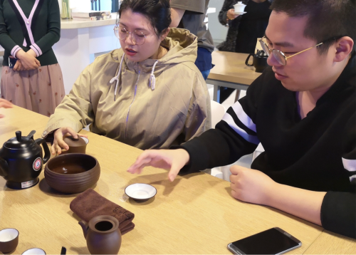 讲座最后,星竹老师用自己带来了茶具,给大家展示泡茶准确的方法,并让两名同学亲自尝试,用教过的方法进行练习,调动起大家的积极性,最终讲座在热烈的氛围中圆满结束。