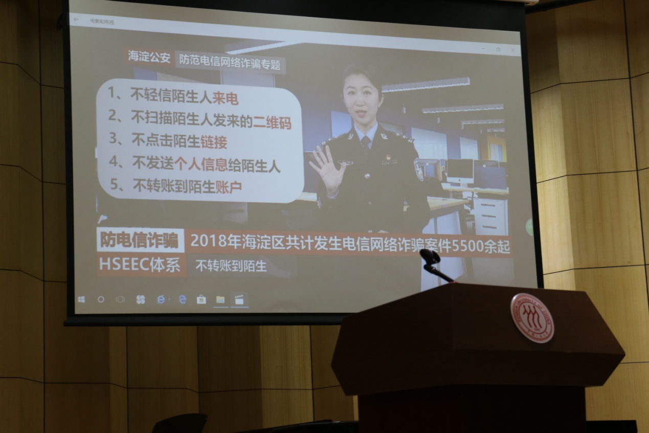 最后的安全教育环节,现场播放了防诈骗案例视频,同学们从中获益良多。