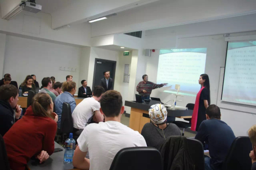 赵方教授在都柏林大学孔子学院举办中国民歌专题学术讲座,由张放老师翻译,郝丹丹老师范唱。从中国民族民间音乐分类,到民歌的产生及发展、民歌的一般特点、各地区民歌特点,再到民歌的传承,赵方教授将中国民歌立体的展现在人们面前,尤为值得一提的是,赵方教授在现场吟唱部分民歌,韵味十足。此外,他还邀请青年女高音歌唱家郝丹丹老师对各地区各民族民歌进行范唱,让听课的外国师生更加直接有效地感受到了中国民歌和中国声乐艺术的魅力。都柏林大学的师生纷纷表示他们十分喜爱这种授课形式,既有学术的高度,又有艺术的感染力。都柏林大学孔子学院院长蔡永强表示,希望今后有机会在更大范围举办此类讲座,让更多的老师和学生能够接触和了解中国民歌和中国声乐艺术。