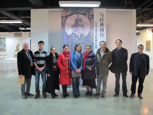 美术馆正展出的我院中国画专业学生临摹作品展,策展人王水清老师介绍了画展情况,朱迪斯·普莱西博士一行对学生作品给予了高度评价。