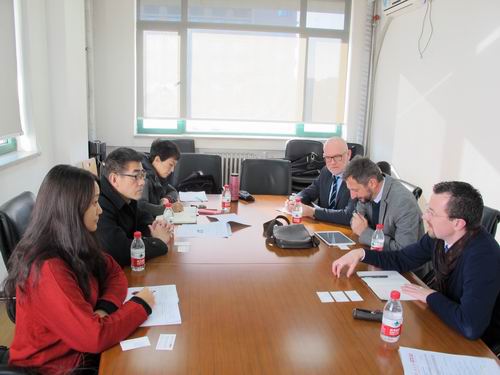 2014121日上午,巴黎四大副校长Pascal Aquien教授,博士研究生院院长Pierre Demeulenaere教授、中法学院法方行政办公室主任马丘来我院访问。副院长王英健教授、艺术学系副系主任付阳华副教授、办公室副主任钱军参加了此次会谈。双方就可能的合作形式进行探讨,并达成初步合作意向,我院有意邀请巴黎四大艺术学教授来院举办2015年暑期小学期课程,为将来更多形式的交流合作创造了良好的开端。