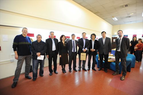 院长Zvika Serper(右7)、特拉维夫大学东亚系主任郭志松(AsafGoldschm idt)(右9),特拉维夫大学孔子学院中方院长李贞实(右6)