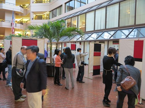 和中国书法家协会《中国书法》杂志社、培训中心联合主办的“四期书法高研班”师生作品35幅,篆、隶、楷、行、草诸体具备。精美的作品吸引了乔治城大学师生及华盛顿周边地区华侨华人艺术家同行及书法爱好者。距离最远的是来自马里兰州巴爾的摩市華人協會主席