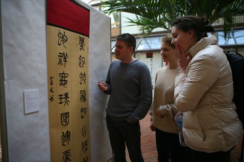 装帧精美、洋溢古典气息的书法作品吸引了乔治城大学学生驻足欣赏