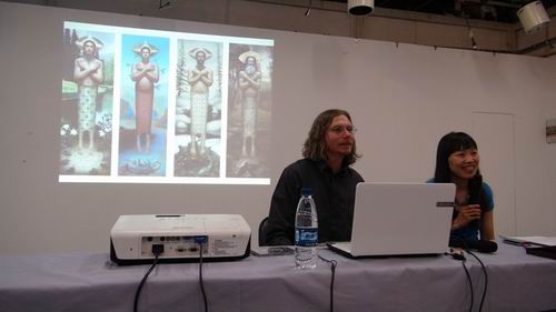 5月15日,Brian Hoover教授作了题目为“旅程和梦”的专题讲座,由绘画系教师郭轶丹主持并翻译。Brian是南犹他大学的油画和版画教授,他的艺术创作与他的梦境息息相关,他在讲座中展示了渗入到他独特的、高度象征性的艺术作品的影响、手法和理念。Brian教授的作品把抽象与具象完美地融合,高度关注个人的内心与精神世界,体现了一个比较纯粹的艺术家生活与创作的内在紧密联系。前去听讲座的学生对他的作品和理念都很感兴趣,现场气氛活跃热情,探讨涉及到创作理念、艺术与生活的关系、艺术流派和精神建构。