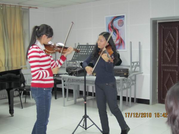 20101217下午,活跃在国际音乐舞台的著名小提琴演奏家钱舟女士,应我院之邀,来音乐系讲授大师班课。她以自己独特的讲课方式与高水准的专业示范,使在场的学生们受益匪浅,整个大师课历时三小时,同学们大开眼界、获益良多。