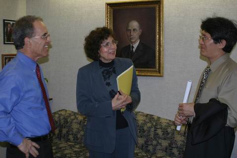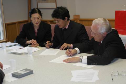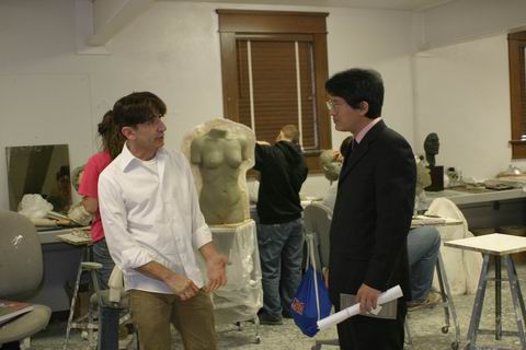 签订协议,开展美术专业师生交流,双方均感从中获益。为提高交流学术成效,2006年,经双方友好协商,我院派出学生由原本科生扩展到硕士生;且确定从2007年始,我院派出教师增至每次4人;另外,俄大(OU)考虑接受我院博士生赴美进修。本次访美,郑晓华书记就增派教师和博士生进修等事宜,与美术学院沃森(Dr. Mary Jo Wotson)院长等交换了意见。