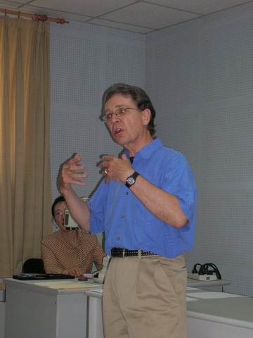 以美国几位著名的爵士歌星和民间歌手为例,选择了十几首有代表性的歌曲,讲述了英文歌词中的诗意和社会意义。为讲座进行中英文翻译的是音乐系徐芳芳教授。到场的观众除音乐系的师生外,还有徐艺美术专业的学生、外语学院及人大其他院系的师生。他们对这些不同风格的爵士歌曲及卡斯先生生动的讲演非常欣赏。讲座结束后,观众提问踊跃,讨论涉及了音乐、美术及相关的艺术领域。大家都认为卡斯先生的讲座是一堂生动有趣的美国爵士音乐历史课。