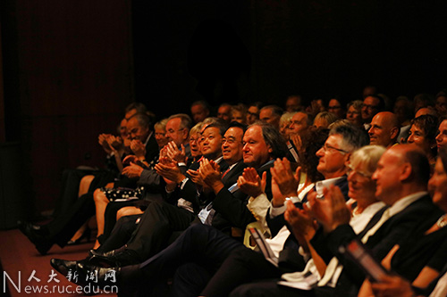 学生参与的“拜罗伊特青年艺术节”闭幕交响音乐会,并在音乐会结束后来到演出后台与同学们交流,祝贺同学们演出取得圆满成功并向所有参演的人民大学师生表示感谢。