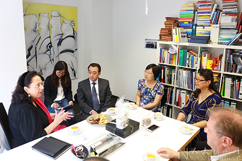 26日下午,吴付来副书记和中国驻慕尼黑总领馆教育领事黄崇岭一同与“拜罗伊特青年艺术节”组委主席Sissy Thammer女士会谈。Sissy Thammer女士欢迎吴付来副书记来到拜罗伊特,她感谢国家汉办和探花av