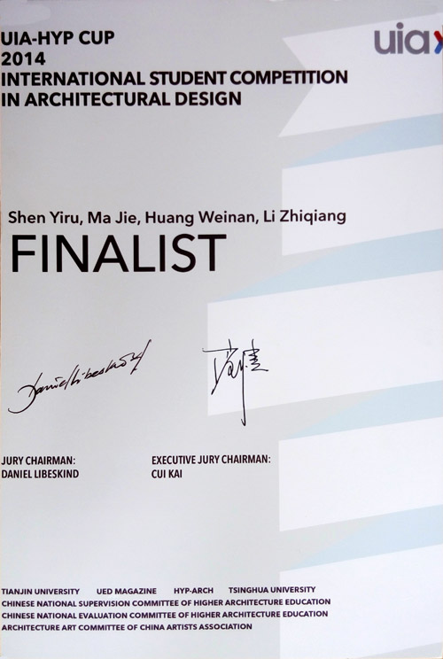“(UIA)2014年霍普杯国际大学生建筑设计竞赛”中获奖