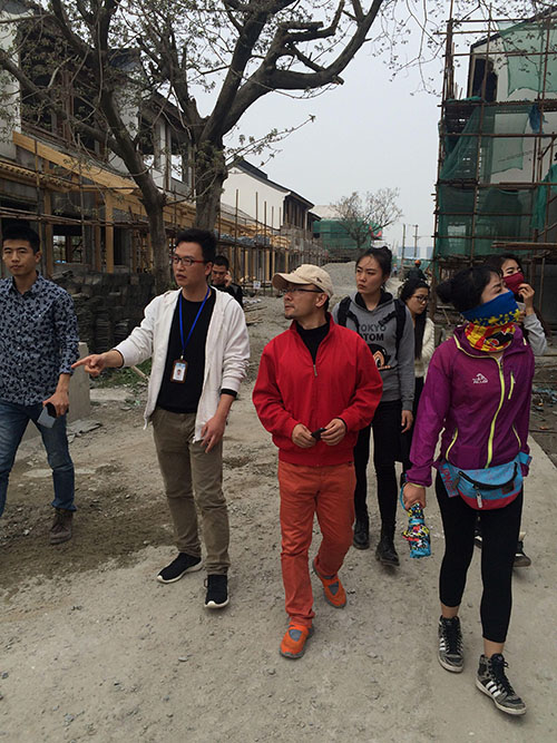 陈炯副教授和苏州市园林设计院设计总监黄若愚,带领研究生参观了正在建设的石湖景区商业街区、以及建成的十里斜塘商业街区,考察中国传统园林建筑的现代设计与应用。