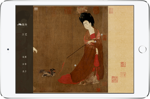 在数媒设计专业组比赛中,尹君伊、刘化康共同完成的作品《有病得治》探讨了人们对智能手机过分依赖造成的精神文化审美的缺失,由此引发人们对于未来科技文化意义的思考。在中华民族服饰手工艺品建筑类的比赛中,由张菲亚、高雨诗、孙悦奇共同制作的作品《云想》app,主要从唐代名画《簪花仕女图》出发,以互动的方式深入解析唐代贵族仕女服饰,将趣味性、知识性与互动性融为一体,为想要了解传统服饰文化的用户带来新的体验。