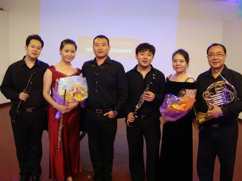 、长春大学音乐学院、大连大学音乐学院和沈阳音乐学院分院进行了演出交流,成功地演奏了高水准、高质量的音乐作品,并在当地师生中产生了热烈反响,受到大家热情称赞,每场演出场面轰动,情绪热烈,演出结束后,观众们意犹未尽,掌声不断。此次演出得到了各校师生的赞赏,为我院赢得了荣誉。此次演出的曲目是奥古斯特•克鲁克哈尔德木管五重奏和弗朗西斯•普朗克钢琴与管乐六重奏。